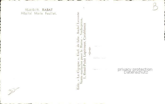 Rabat Marokko Hopital Marie Feuilett postalisch nicht gelaufen Erhaltung siehe scans