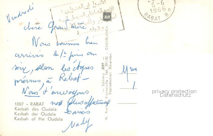 old postcard Rabat Marokko Kasbah des Oudaia postalisch gelaufen Erhaltung siehe scans [WerneD78]