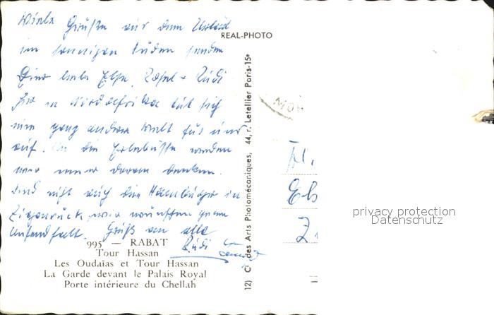 alte Postkarte Rabat Marokko Tour Hassan Les Oudaias Garde Palais Royal Porte interieure du Chellah postalisch gelaufen Erhaltung siehe scans