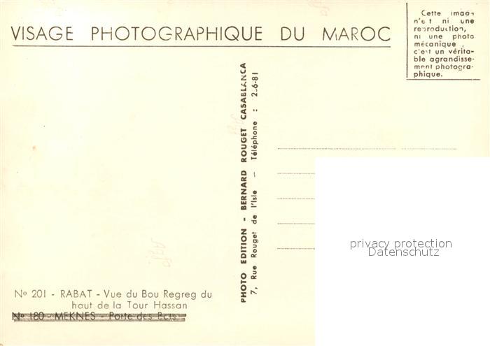 13049581 Rabat Marokko Vue du Bou Regreg du haut de la Tour Hassan postalisch nicht gelaufen Erhaltung siehe scans [NatalD47] Nata Katcode 18300