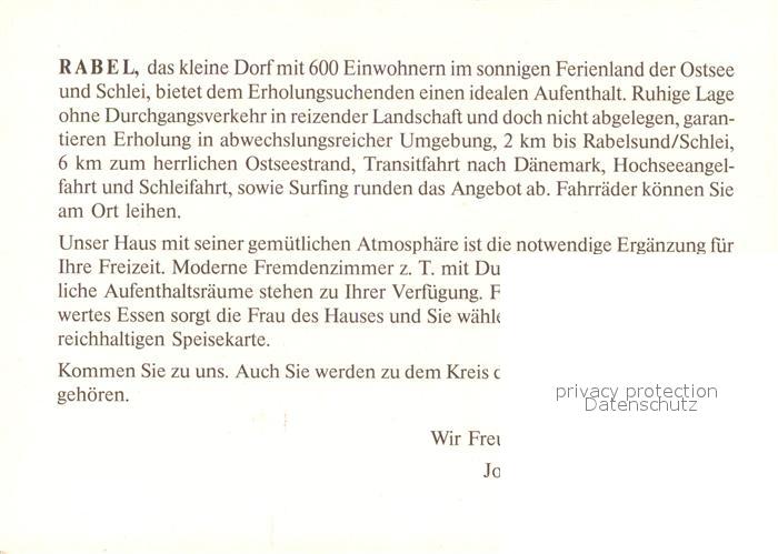 73197162 Rabel Gasthaus Rabel Bar Terrasse Fremdenzimmer Ostseestrand postalisch nicht gelaufen Werbekarte (keine Postkarte) Erhaltung siehe scans [FriedD77] KatCode: 11110001059154