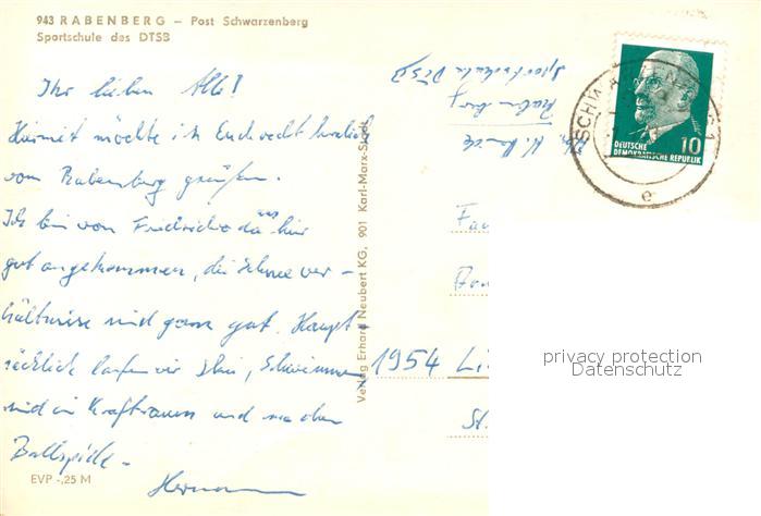 73747508 alte Postkarte Rabenberg Breitenbrunn Sportschule des DTSB postalisch gelaufen Erhaltung siehe scans [WerneD78] KatCode: 11110014191090