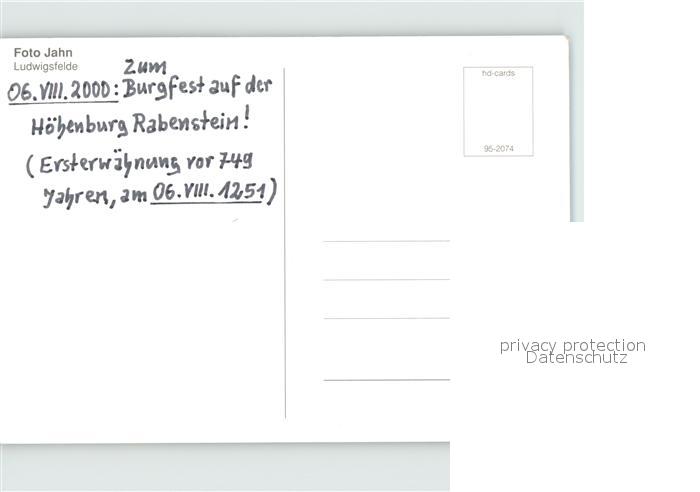 72412653 Rabenstein Flaeming Burg postalisch nicht gelaufen Erhaltung siehe scans KatCode: 11110012069485