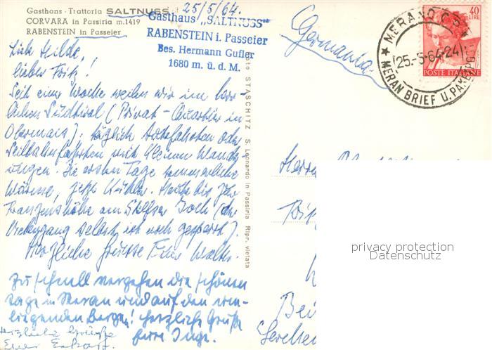 73769761 Rabenstein Passeier Gasthaus Trattoria Saltnuss postalisch gelaufen Erhaltung siehe scans [FriedD77] old postcard Frie Katcode 11240