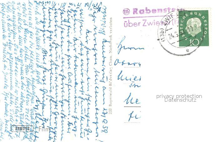73740149 alte Postkarte Rabenstein Zwiesel Gasthof Pension Waldesruh postalisch gelaufen Erhaltung siehe scans [WerneD78] KatCode: 11110009276148