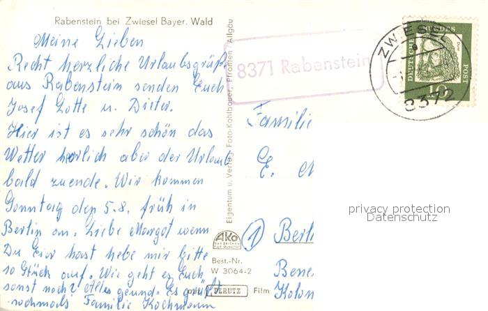 73328383 alte Postkarte Rabenstein Zwiesel Panorama postalisch gelaufen Erhaltung siehe scans [KathaD81] KatCode: 11110009276148