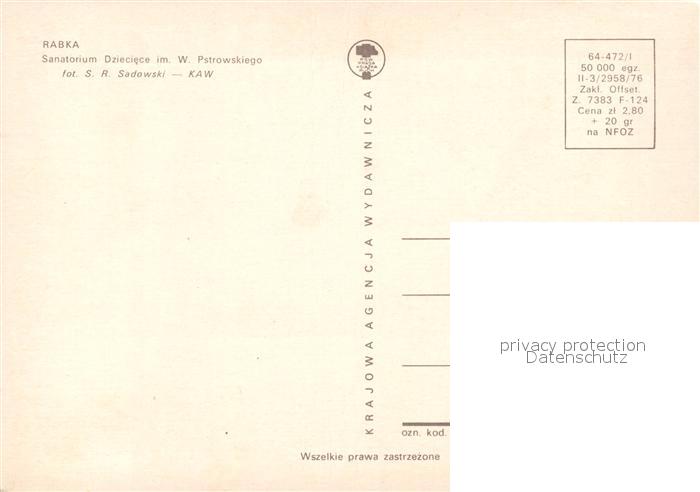13313489 Rabka Sanatorium Dzieciece im W Pstrowskiego postalisch nicht gelaufen Erhaltung siehe scans [WerneD78] KatCode: 11410