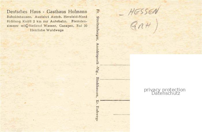 74055408 Raboldshausen Neuenstein Hessen Gasthaus Hofmann Burg Neuenstein Eisenberg Turm Eisenteich postalisch nicht gelaufen Erhaltung siehe scans [WerneD78] KatCode: 11110006632014