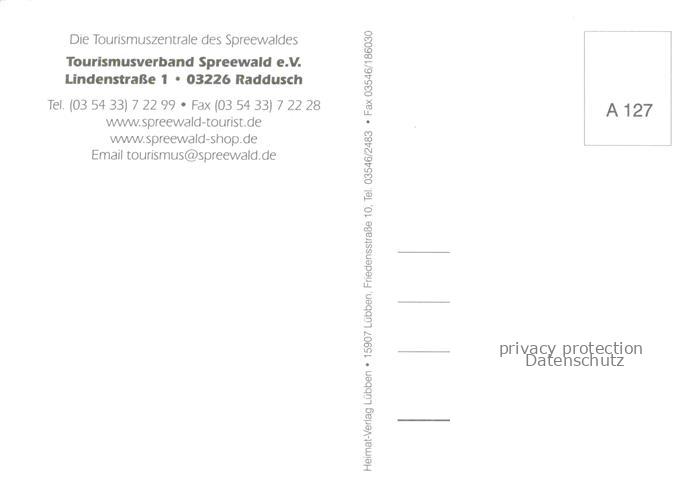74025061 Raddusch Haus des Tourismus Spreewald-Urlaub postalisch nicht gelaufen Erhaltung siehe scans [FriedD77] KatCode: 11110012066320