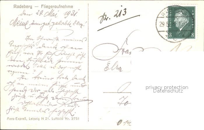 32185658 alte Postkarte Radeberg Sachsen Fliegeraufnahme postalisch gelaufen Erhaltung siehe scans KatCode: 11110014292445