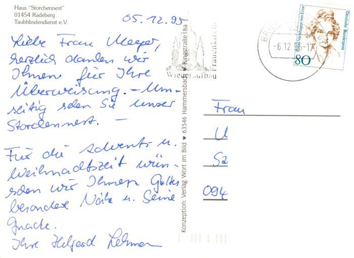 73945066 alte Postkarte Radeberg Sachsen Haus Storchennest Teichrosen postalisch gelaufen Erhaltung siehe scans [FriedD77] KatCode: 11110014292445