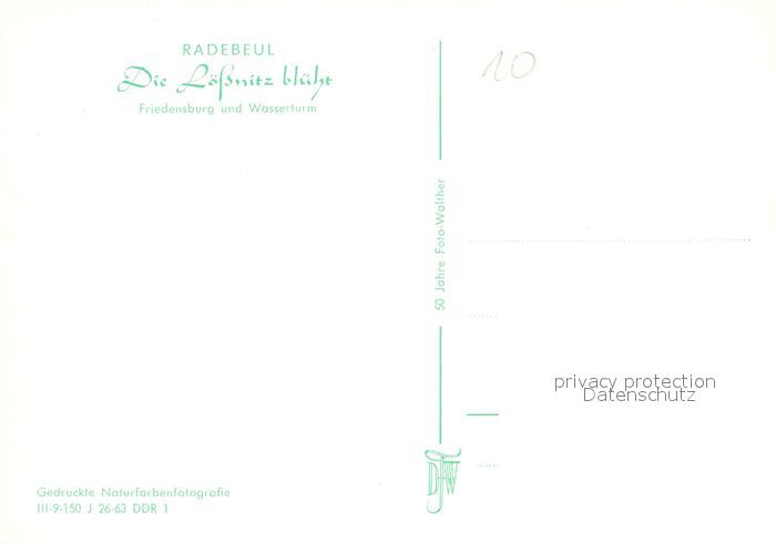 72996242 Radebeul Friedensburg und Wasserturm Bluehende Loessnitz postalisch nicht gelaufen Erhaltung siehe scans [WerneD78] KatCode: 11110014280310