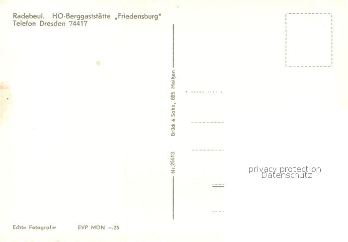 73077075 Radebeul HO Berggaststaette Friedensburg postalisch nicht gelaufen Erhaltung siehe scans [KathaD81] KatCode: 11110014280310