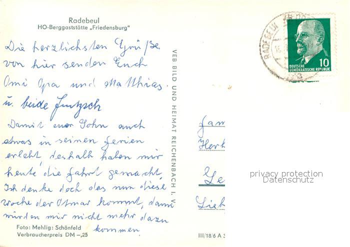 72987200 alte Postkarte Radebeul HO Berggaststaette Friedensburg postalisch gelaufen Erhaltung siehe scans [WerneD78] KatCode: 11110014280310