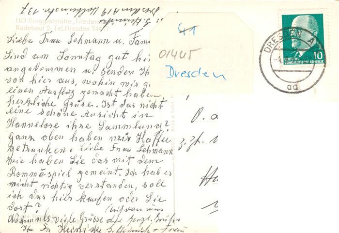 73924657 alte Postkarte Radebeul HO Berggaststaette Friedensburg postalisch gelaufen Erhaltung siehe scans [FriedD77] KatCode: 11110014280310