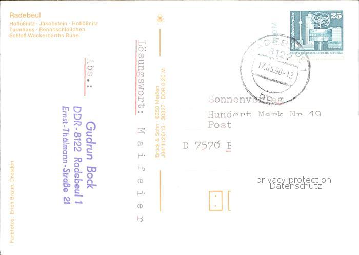 72401279 alte Postkarte Radebeul Hofloessnitz Jakobstein Turmhaus Bennoschloesschen Schloss postalisch gelaufen Erhaltung siehe scans KatCode: 11110014280310