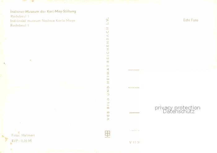 72703550 Radebeul Indianer Museum der Karl May Stiftung postalisch nicht gelaufen Erhaltung siehe scans [FriedD77] KatCode: 11110014280310