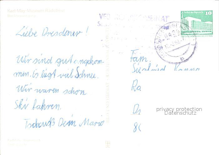 72373205 alte Postkarte Radebeul Karl-May-Museum Blockhauseingang postalisch gelaufen Erhaltung siehe scans KatCode: 11110014280310