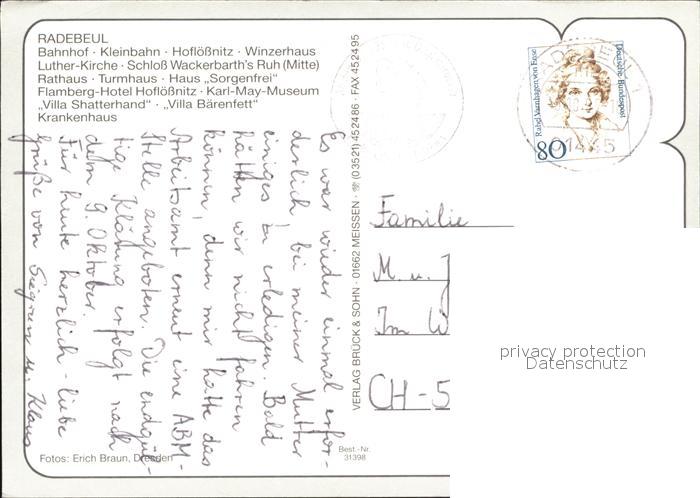 72585755 alte Postkarte Radebeul Kleinbahn Hofloessnitz Winzerhaus Schloss Wackerbarths Ruh postalisch gelaufen Erhaltung siehe scans [LiesaD40] KatCode: 11110014280310