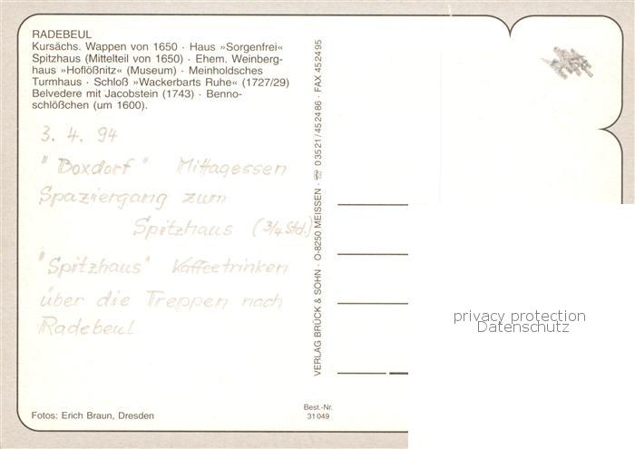 73840848 Radebeul Kursaechsiches Wappen Spitzhaus Museum Turmhaus Schloss Belvedere Jacobstein Schloesschen postalisch nicht gelaufen Erhaltung siehe scans [FriedD77] KatCode: 11110014280310
