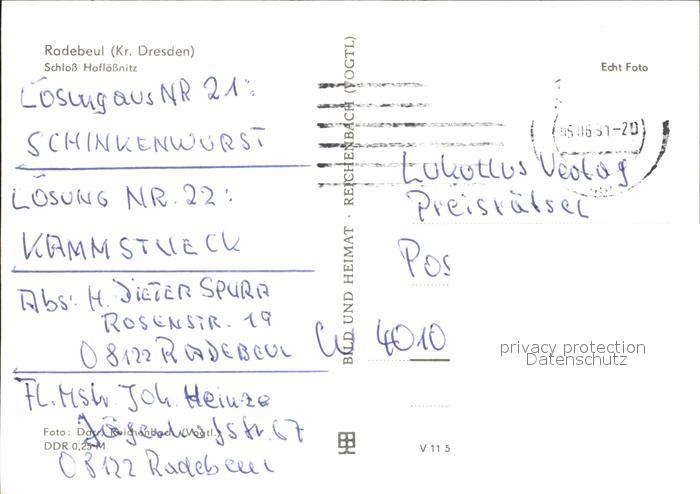 72200967 alte Postkarte Radebeul Schloss Hofloessnitz postalisch gelaufen Erhaltung siehe scans KatCode: 11110014280310