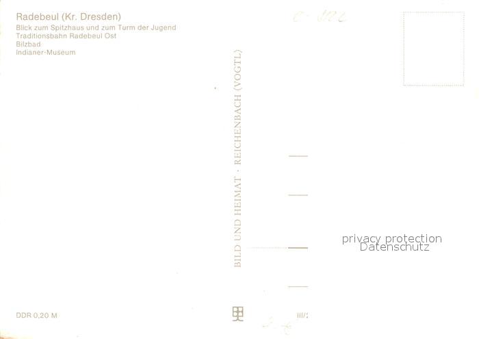 73039870 Radebeul Spitzhaus Turm der Jugend Tradionsbahn Bilzbad Indianer Museum postalisch nicht gelaufen Erhaltung siehe scans [WerneD78] KatCode: 11110014280310
