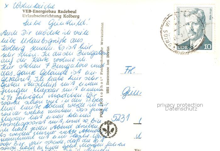 73036477 alte Postkarte Radebeul Urlaubseinrichtung Kolberg postalisch gelaufen Erhaltung siehe scans [KathaD81] KatCode: 11110014280310