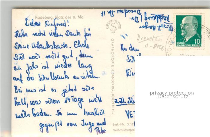 43350275 alte Postkarte Radeburg Platz des 8 Mai postalisch gelaufen Erhaltung siehe scans [WerneD78] KatCode: 11110014280320