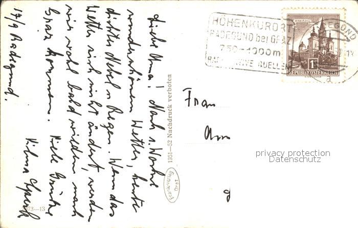 72033785 alte Postkarte Radegund Graz Sankt Schoeckel postalisch gelaufen Erhaltung siehe scans KatCode: 11390221060642