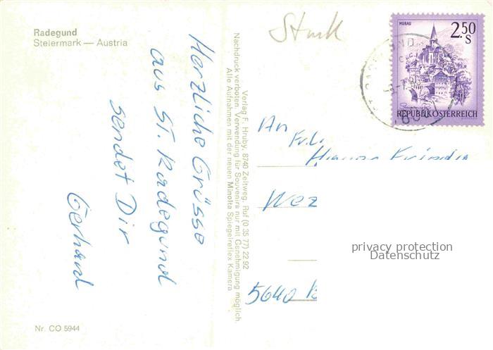 74156144 alte Postkarte Radegund Graz Sankt Steiermark AT Fliegeraufnahme postalisch gelaufen Erhaltung siehe scans [FriedD77] KatCode: 11390221060642