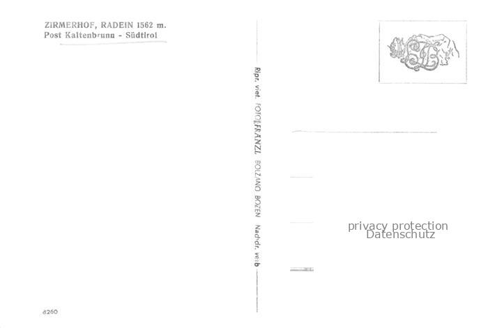 74043737 Radein Kaltenbrunn Zirmerhof Gasthof Alpenblick postalisch nicht gelaufen Erhaltung siehe scans [FriedD77] KatCode: 11240