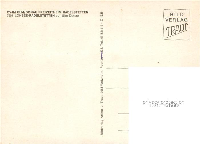 73718076 Radelstetten Lonsee CVJM Ulm-Donau Freizeitheim Radelstetten postalisch nicht gelaufen Erhaltung siehe scans [WerneD78] KatCode: 11110008425075