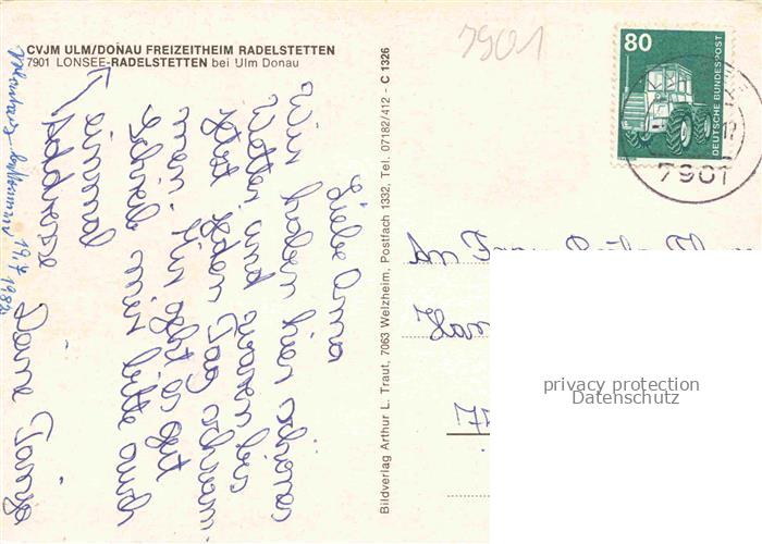 74049871 alte Postkarte Radelstetten Lonsee CVJM Ulm/Donau Freizeitheim postalisch gelaufen Erhaltung siehe scans [FriedD77] KatCode: 11110008425075