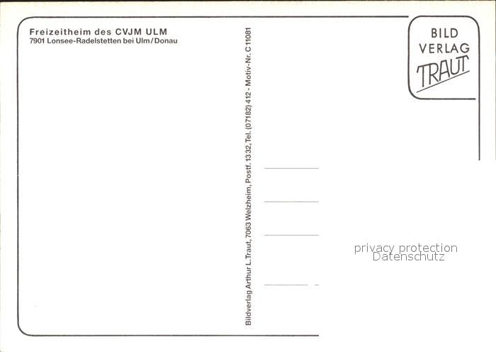 72255594 Radelstetten Lonsee Freizeitheim des CVJM Ulm postalisch nicht gelaufen Erhaltung siehe scans KatCode: 11110008425075