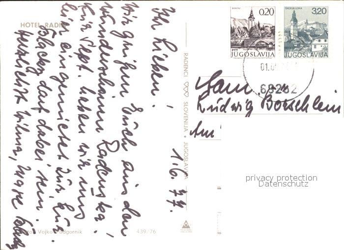old postcard Radenci Bad Radein Hotel Radin Pferdekutsche Hallenbad postalisch gelaufen Erhaltung siehe scans