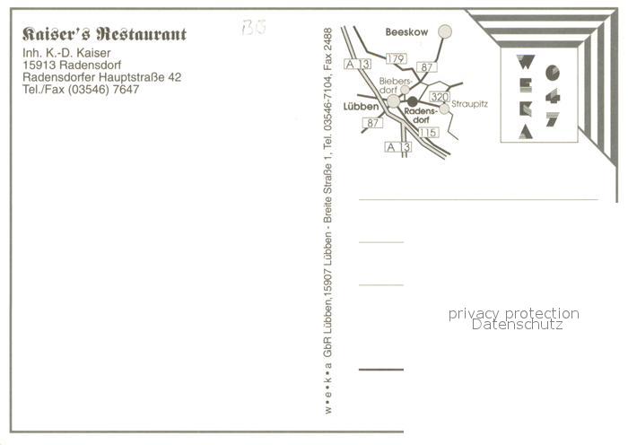 73663359 Radensdorf Spreewald Kaisers Restaurant postalisch nicht gelaufen Erhaltung siehe scans [LiesaD40] KatCode: 11110012061316