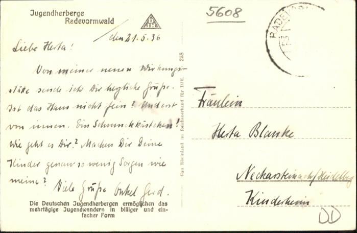 40955070 Radevormwald Jugendherberge NZ4 postalisch gelaufen Alte Ansichtskarte Postkarte alte Postkarte Katcode 11110005374036