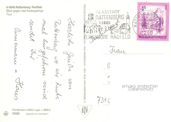 73354886 alte Postkarte Radfeld Rattenberg Fliegeraufnahme mit Kaisergebirge postalisch gelaufen Erhaltung siehe scans [WerneD78] KatCode: 11390335070521