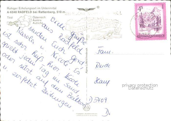 42923707 alte Postkarte Radfeld Tirol Panorama mit Inntal Autobahn Fliegeraufnahme postalisch gelaufen Erhaltung siehe scans [WerneD48] KatCode: 11390335070520