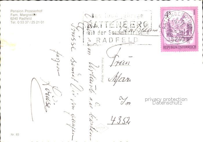 72037758 alte Postkarte Radfeld Tirol Pension Prosserhof postalisch gelaufen Erhaltung siehe scans KatCode: 11390335070520
