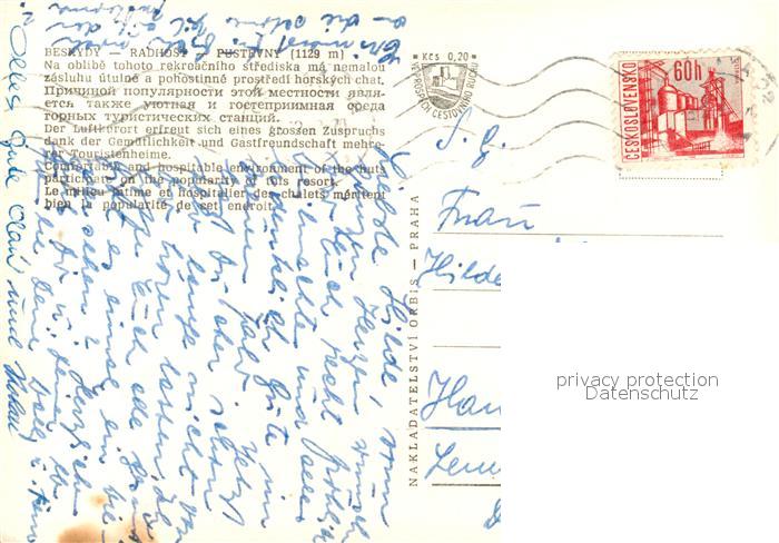 old postcard Radhost Pusterny Sessellift Denkmal postalisch gelaufen Erhaltung siehe scans [KathaD81]