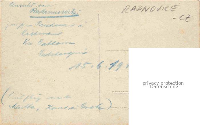 74024331 Radnovice Radniowitz Reichenberg CZ Panorama postalisch nicht gelaufen Erhaltung siehe scans [WerneD78] KatCode: 11520