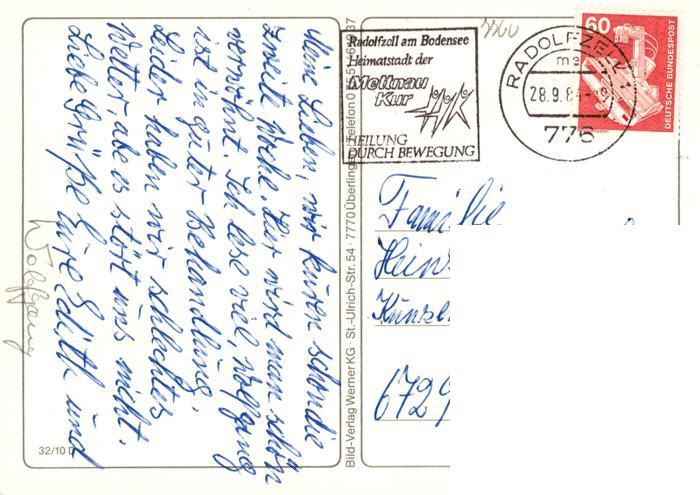 73938175 alte Postkarte Radolfzell Bodensee Bootsliegeplatz Kirche Strand Schwanenteich Ortspartie Park postalisch gelaufen Erhaltung siehe scans [WerneD78] KatCode: 11110008335063