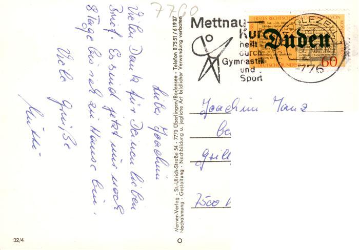 73938167 alte Postkarte Radolfzell Bodensee Faehre Strandcafe Anleger Bootspartie Kirche Park Storch postalisch gelaufen Erhaltung siehe scans [WerneD78] KatCode: 11110008335063