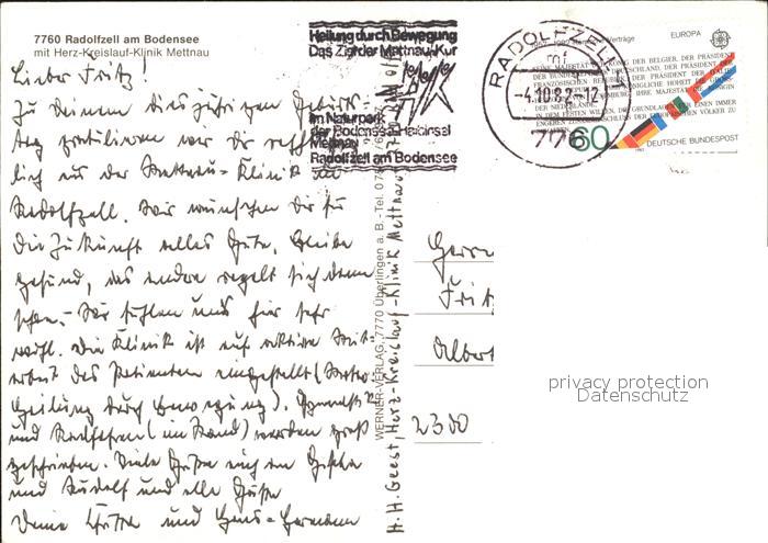 72289879 alte Postkarte Radolfzell Bodensee Fliegeraufnahme Herz Kreislauf Klinik Mettnau postalisch gelaufen Erhaltung siehe scans KatCode: 11110008335063