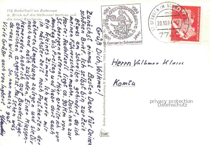 74096907 alte Postkarte Radolfzell Bodensee Fliegeraufnahme mit Blick auf Insel Mettnau und Reichenau postalisch gelaufen Erhaltung siehe scans [WerneD78] KatCode: 11110008335063