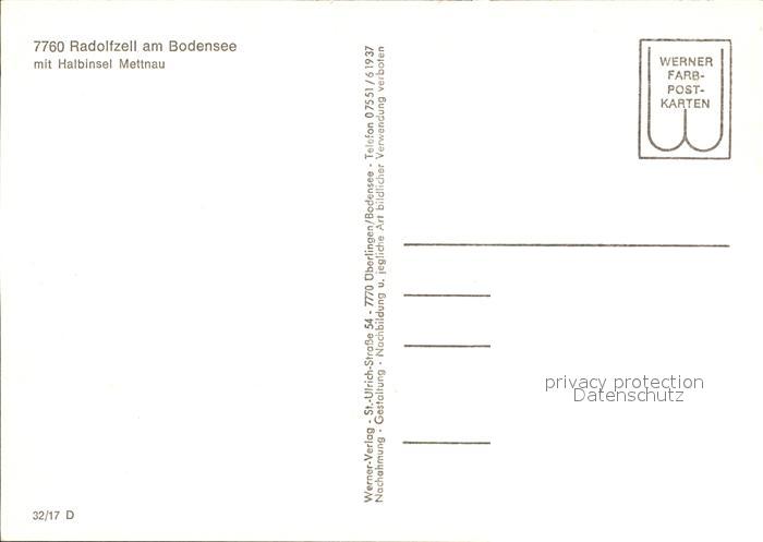 72305200 Radolfzell Bodensee Fliegeraufnahme mit Halbinsel Mettnau postalisch nicht gelaufen Erhaltung siehe scans KatCode: 11110008335063