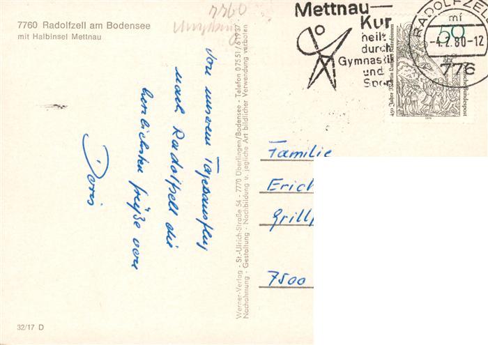 73938166 alte Postkarte Radolfzell Bodensee Fliegeraufnahme mit Halbinsel Mettnau postalisch gelaufen Erhaltung siehe scans [WerneD78] KatCode: 11110008335063