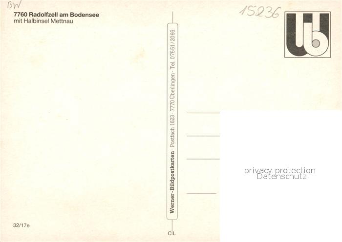 73540172 Radolfzell Bodensee Fliegeraufnahme mit Halbinsel Mettnau postalisch nicht gelaufen Erhaltung siehe scans [WerneD78] KatCode: 11110008335063