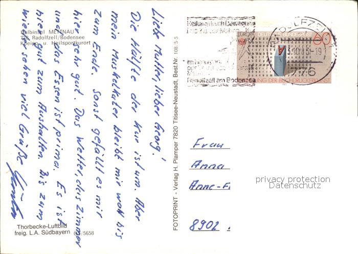 72598729 alte Postkarte Radolfzell Bodensee Halbinsel Mettnau Fliegeraufnahme postalisch gelaufen Erhaltung siehe scans [LiesaD40] KatCode: 11110008335063